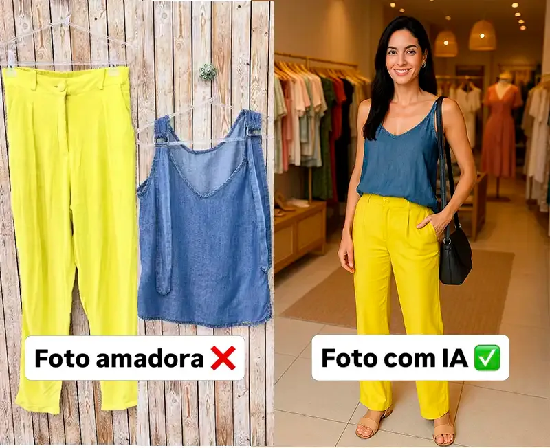 VEJA O PASSO A PASSO SIMPLES E RÁPIDO  Imagine transformar aquelas fotos simples em imagens realistas de provador, direto no corpo. Com nosso Robô de Moda IA, suas peças ganham vida, despertam desejo imediato, fazendo suas clientes sentirem que já estão vestindo o produto. Resultado? Mais atenção, mais cliques e muito mais vendas todos os dias.